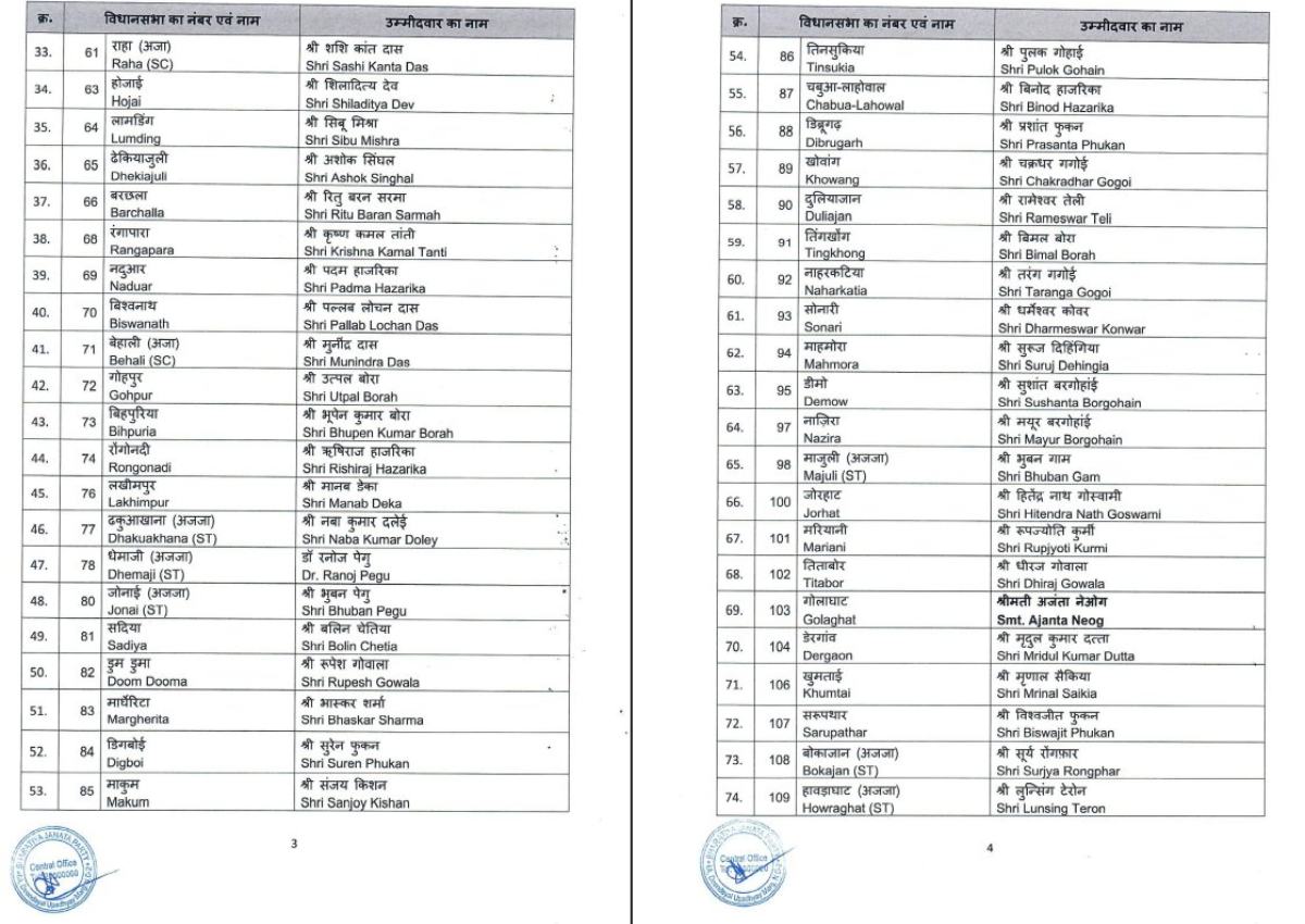 असम विधानसभा चुनाव को लेकर सियासी हलचल तेज हो गई है। भारतीय जनता पार्टी ने अपनी पहली उम्मीदवार सूची जारी कर दी है, जिसमें 88 सीटों पर प्रत्याशियों के नाम घोषित किए गए हैं।